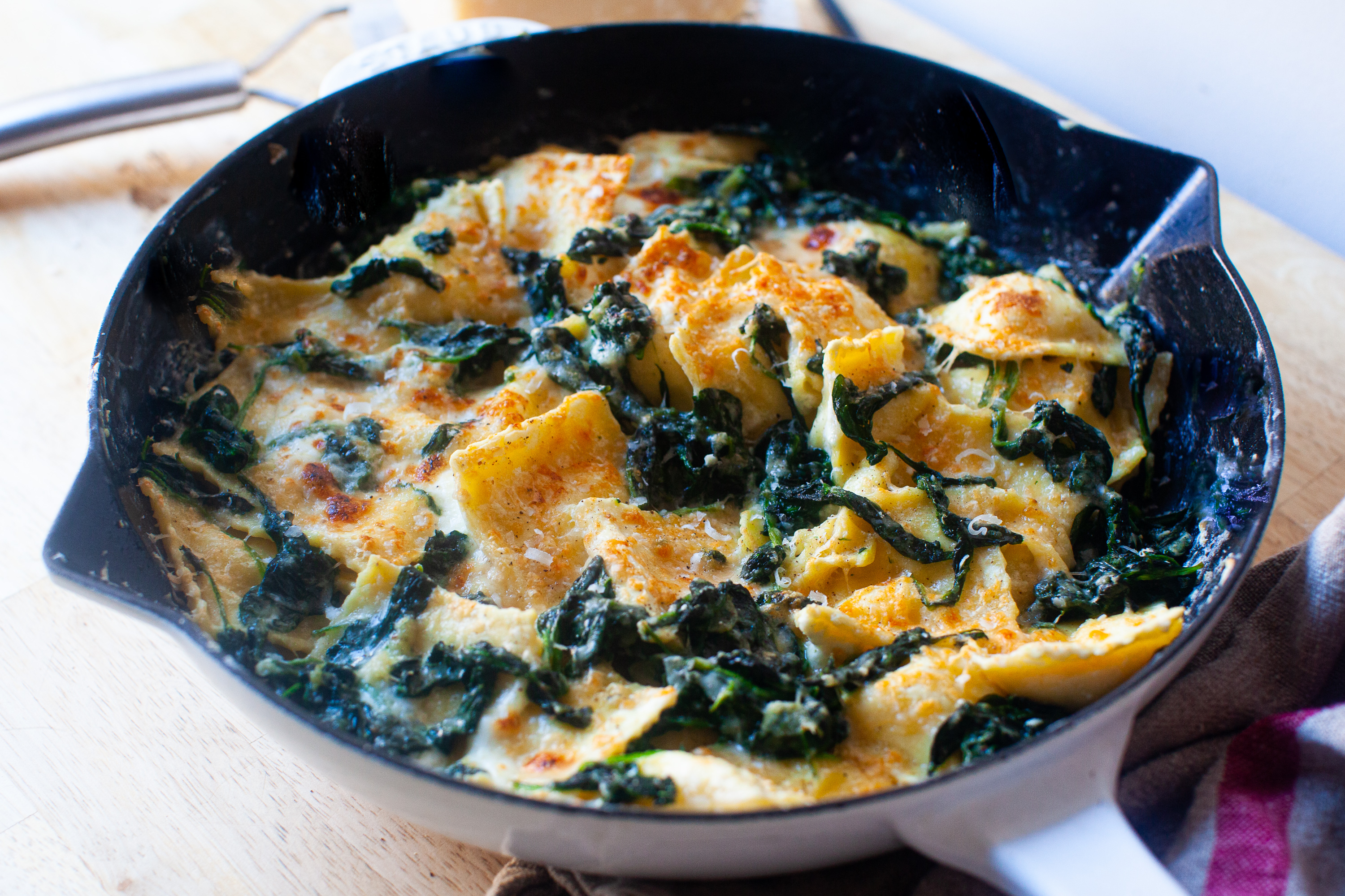 skillet ravioli with spinach